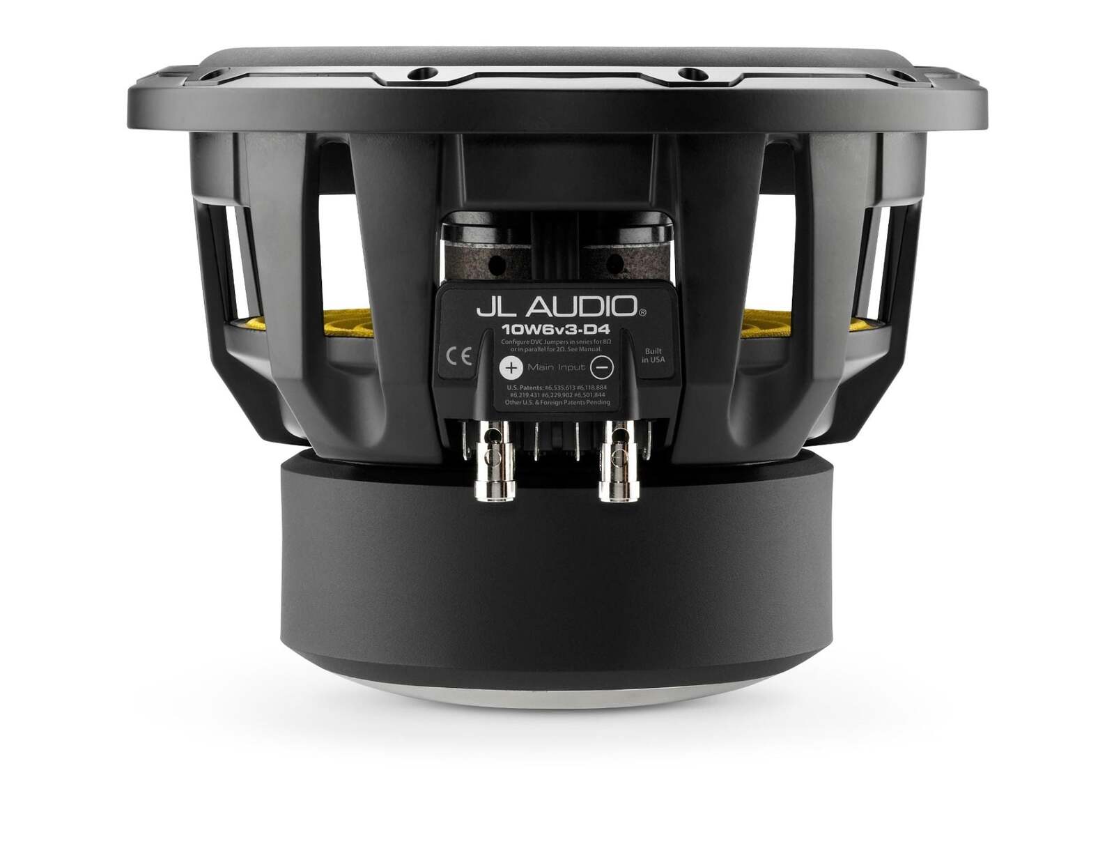 W6v3 10-inch Subwoofer (600 W, dual 4 ? voice coils) If you are seeking to reproduce the highest quality sub-bass in a very compact enclosure application, the 10W6v3 is the ultimate choice. This advanced Subwoofer offers several technologies shared with the flagship W7AE subwoofers to provide powerful advantages in motor linearity and suspension behavior. These combine with a very efficient cooling circuit to deliver reduced distortion and outstanding dynamic balance. The 10W6v3 is best used with amplifier power in the 200W – 600W range and is optimized to operate in a sealed enclosure with only 0.55 cu. ft. (15.6 l) of air space, or a 0.75 cu. ft. (21.2 l) ported enclosure. Detailed enclosure recommendations can be found in the “Specifications” tab. Greater excursion capability and higher power handling distinguish it from our 10W3v3 10-inch Subwoofer, allowing for higher output. Dual 4 ? voice coils permit deploying the W6v3 as a 2 ? or 8 ? driver.