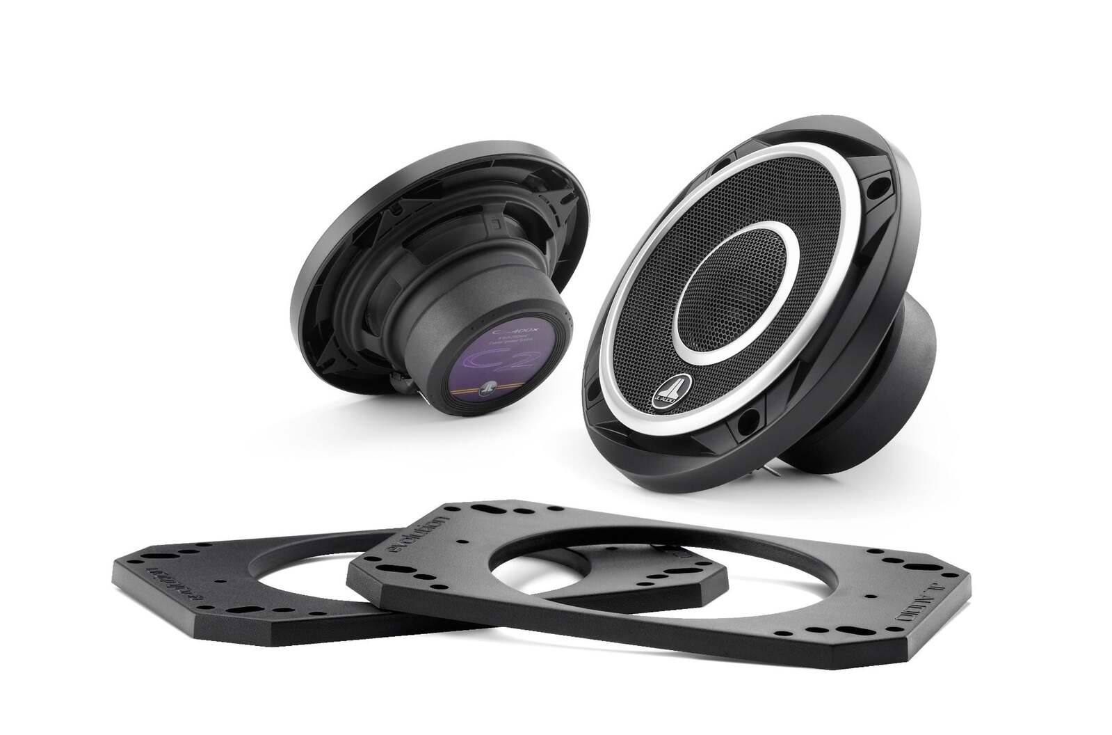 Coaxial Speaker System: 4-inch (100 mm) Woofer, 0.75-inch (19 mm) Silk Dome Tweeter The Evolution C2 systems deliver sparkling high-frequency detail, smooth mid-range and powerful mid-bass, thanks to real silk dome tweeters and precision-engineered woofer designs. The C2-400x system features 4-inch (100 mm) woofers with mineral-filled polypropylene cones, long excursion capabilities and stamped steel frames. The woofer design benefits from JL Audio’s vast woofer design experience and advanced modeling systems. Breakaway mounting tabs on the woofer frame allow the C2-400x to be installed in four-hole or two-hole configurations. Injection-Molded adaptor plates are also included to allow mounting of the C2-400x speakers into a 4 x 6 (100 x 150 mm) speaker location. Tweeters are coaxially mounted and built with 0.75-inch silk dome diaphragms that deliver smooth, extended response, on and off axis. The small size of the C2 tweeter minimizes tweeter protrusion, allowing C2 coaxials to fit behind most factory speaker grilles. Speaker grilles are included, each consisting of a black grille tray with satin silver accents and a black steel mesh grille with an electroformed JL Audio logo. Sonic character: Clean and Dynamic Sold as a pair.