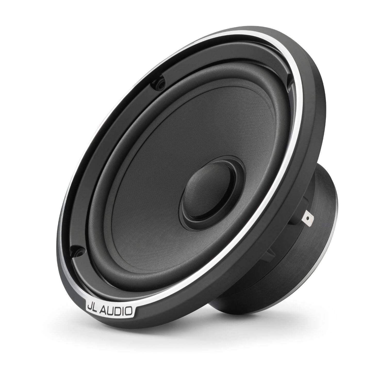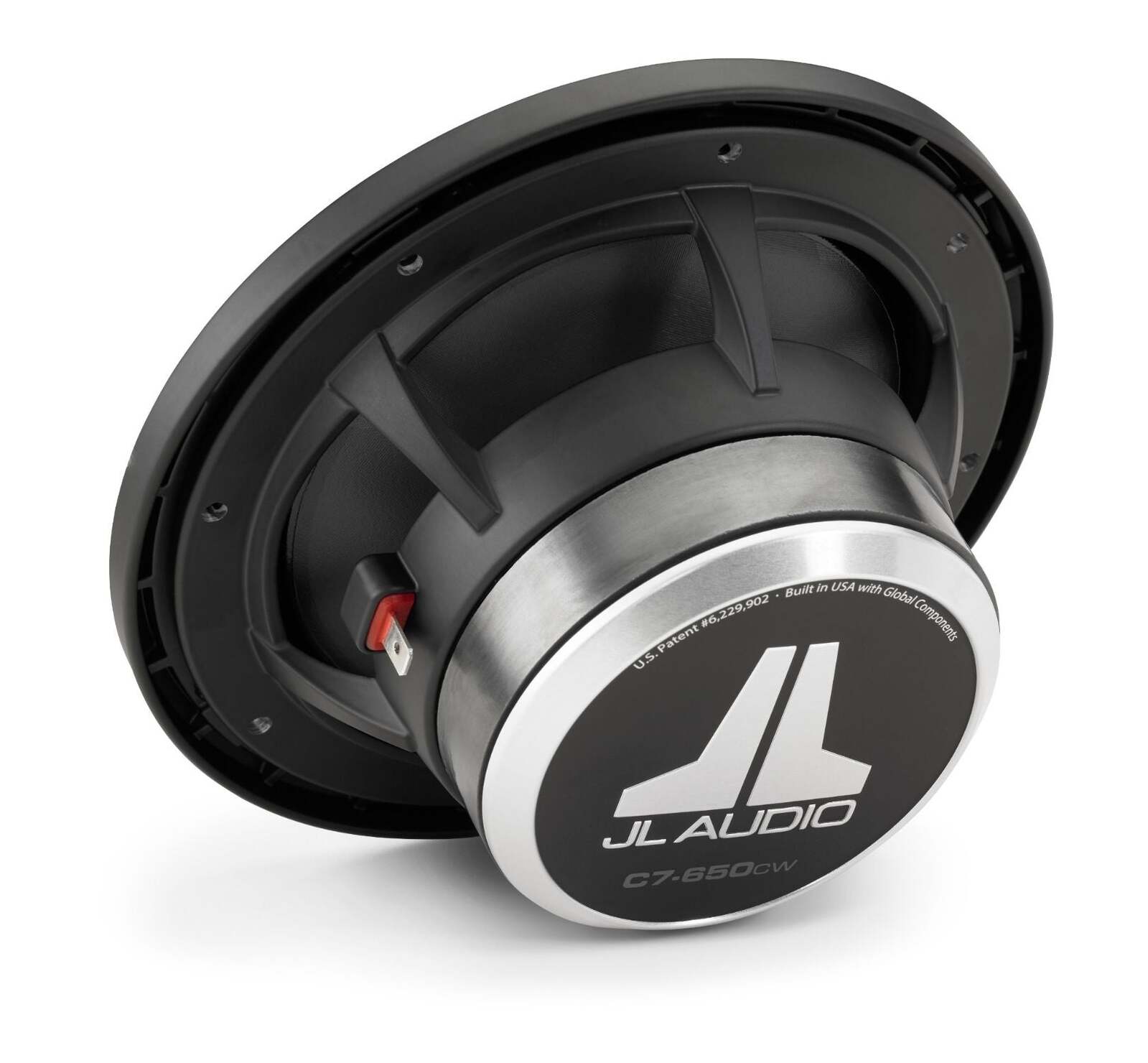 6.5-inch (165 mm) Component Woofer, with Grille C7 is the pinnacle of JL Audio automotive loudspeaker design, benefiting from our most advanced development tools and a complete commitment to precision manufacturing. The C7-650cw component woofer is capable of operating in a 3-way system, with a midrange and tweeter, or with only a tweeter in a 2-way configuration. Engineered from the ground up, it has exceptional linear excursion capability and outstanding linearity, resulting in solid mid-bass and pure, precise, mid-range performance. Distortion and non-linearities have been minimized through critical optimization of dynamic motor and suspension behaviors. Passive crossover networks are not included with C7 drivers, as they are designed for active systems. Instead, we recommend a high-quality tuning DSP, such as the JL Audio TwK® 88 or D8, or a VXi amplifier with built-in DSP, with a dedicated amplifier channel for each C7 loudspeaker in the system. Precise setup of equalization, delay and crossover filters will ensure optimal in-vehicle performance. C7-650cw Design Notes: Cone and Dust Cap: Vacuum-formed, mineral-filled polypropylene material offers excellent damping and low mass. The cone body features a gentle curvilinear profile to optimize response. A specially shaped dust cap attaches to the cone body and the voice coil former to improve high frequency behavior. Suspension design: The moving assembly is suspended and damped via a large-diameter, linear profile spider formed from a Nomex®/polycotton blend, and a positive-roll, rubber surround. The two combine to provide optimum damping without prematurely restricting the C7-650cw’s outstanding excursion capability. Motor Design: The C7-650cw employs a high-density magnetic circuit with a high-grade Y35 Strontium-ferrite magnet, and a specially machined, T-Yoke motor topology. Motor magnetics have been precisely optimized utilizing advanced FEA tools to reduce distortion and provide linear motor force throughout the driver’s performance range. A 32 mm (1.27 inch) diameter, overhung voice coil is employed, wound with copper wire onto a fiberglass voice coil former. The oversized voice coil offers extended power handling capability, minimizing thermal compression and distortion at higher listening levels. Chassis Design: A purpose-engineered cast alloy basket is employed, featuring thin spokes to maximize rear open area, and our Patented Elevated Frame Cooling technology. Design Bandwidth: With 48 dB/octave filters: 50 Hz – 5 kHz With 24 dB/octave filters: 60 Hz – 5 kHz With 12 dB/octave filters: 70 Hz – 5 kHz Built in USA with Global Components Sold individually, with a cast-alloy grille tray, one fine mesh steel grille insert and one spiral steel grille insert. The performance of every C7 driver is tested and verified, then assigned a unique serial number. Register your C7 loudspeaker online to receive a copy of its specific Acoustical Test Report.