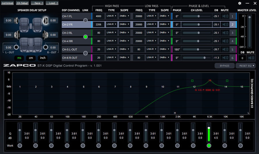 •High-pass and low-pass filters, phase control, signal delay, and 15 channels of parametric equalization on each channel